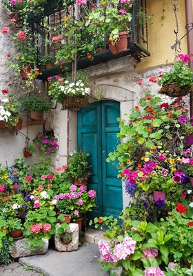 Bloemen bij deur 70x100CM